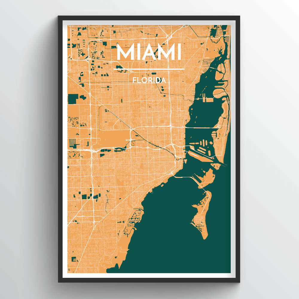 Miami City Map Art Prints High Quality Custom Made Art Point