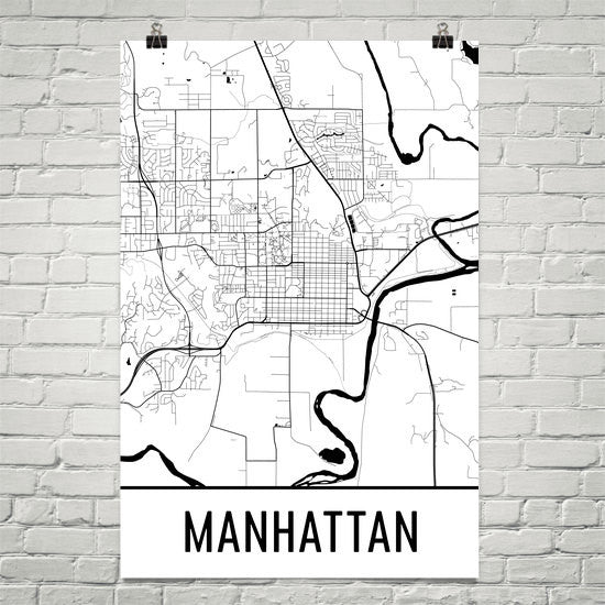 Manhattan KS Street Map Poster Wall Print by Modern Map Art